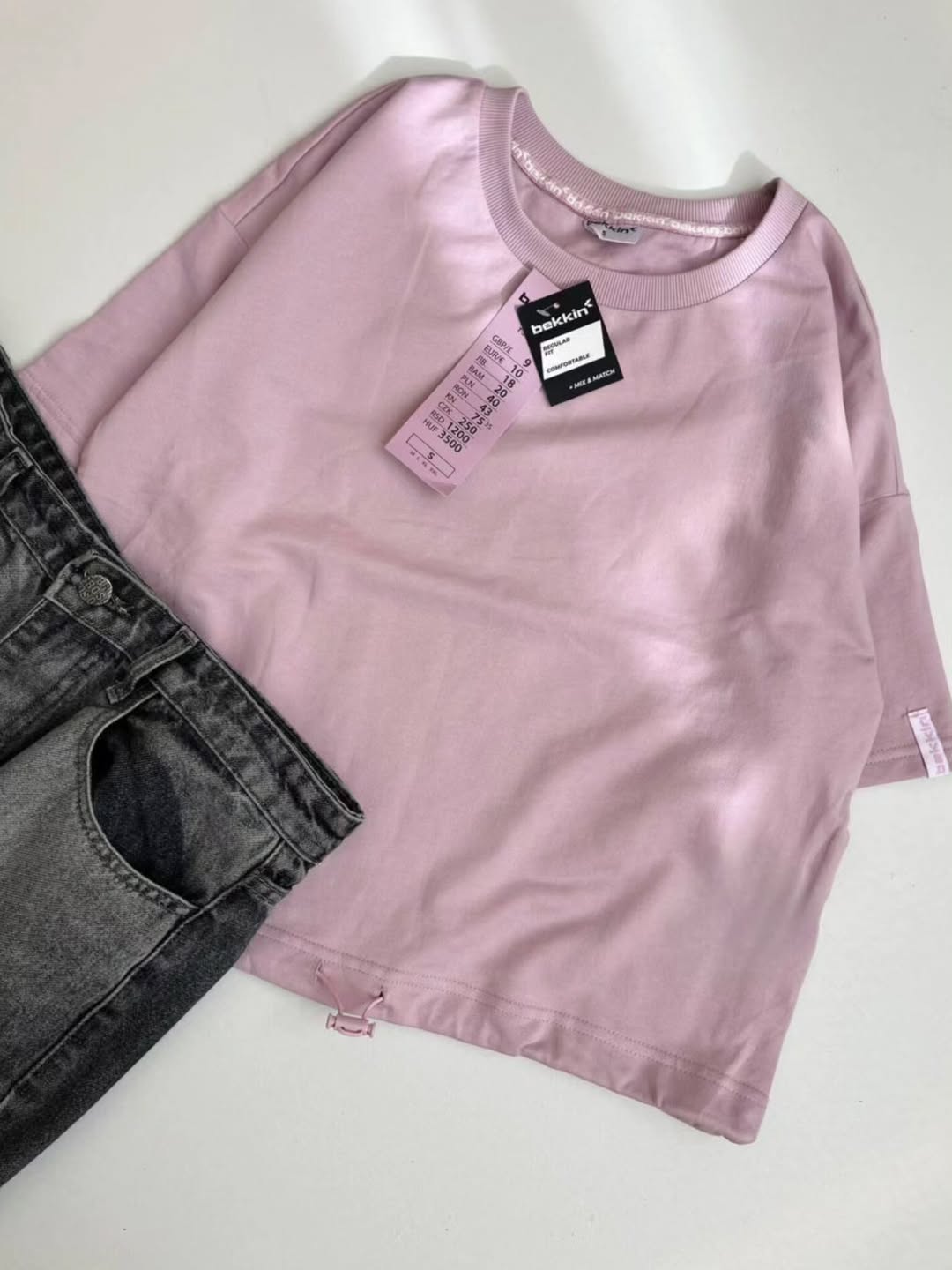 کراپ تیشرت نخی دخترانه رنگ یاسی Bekkin XXL