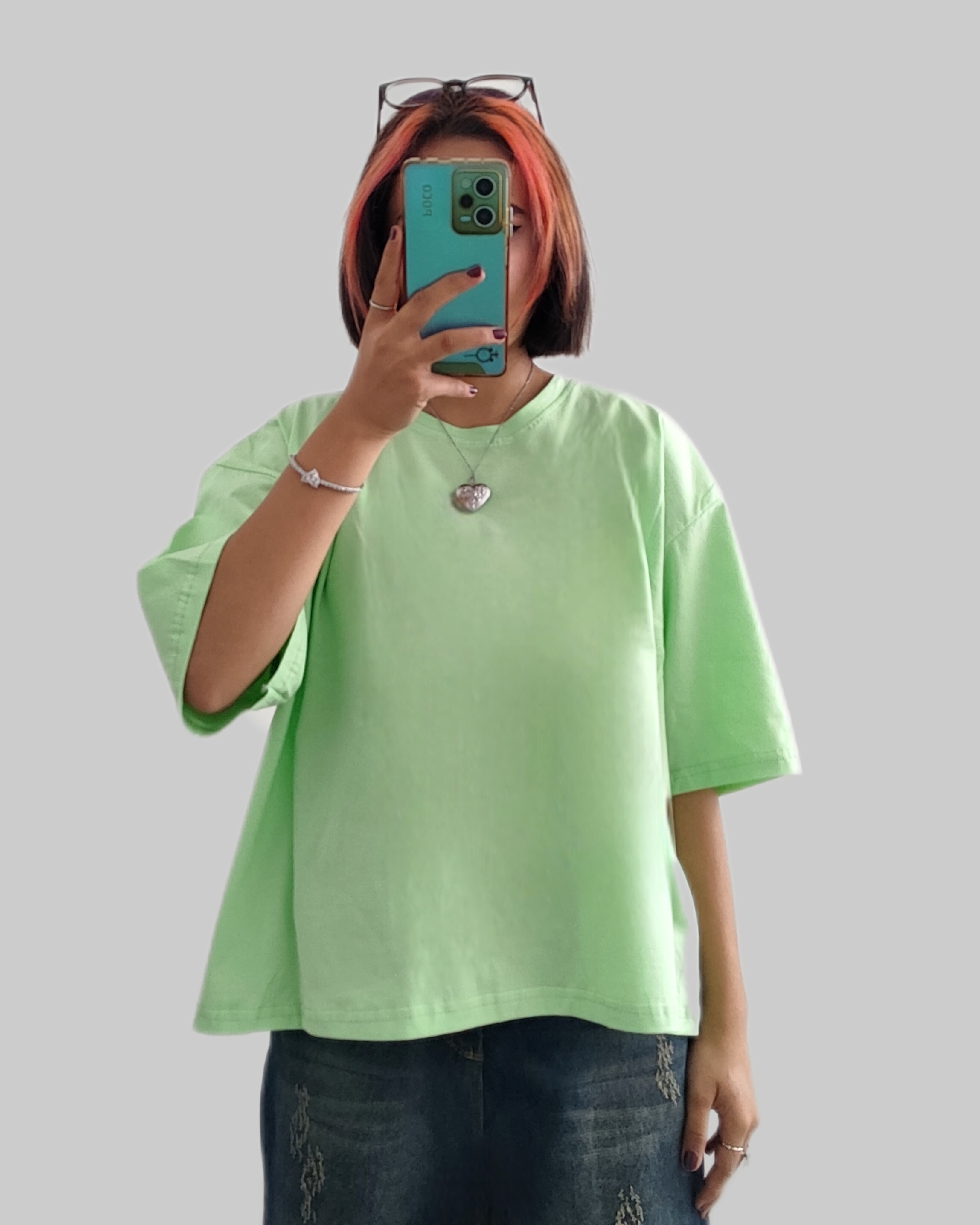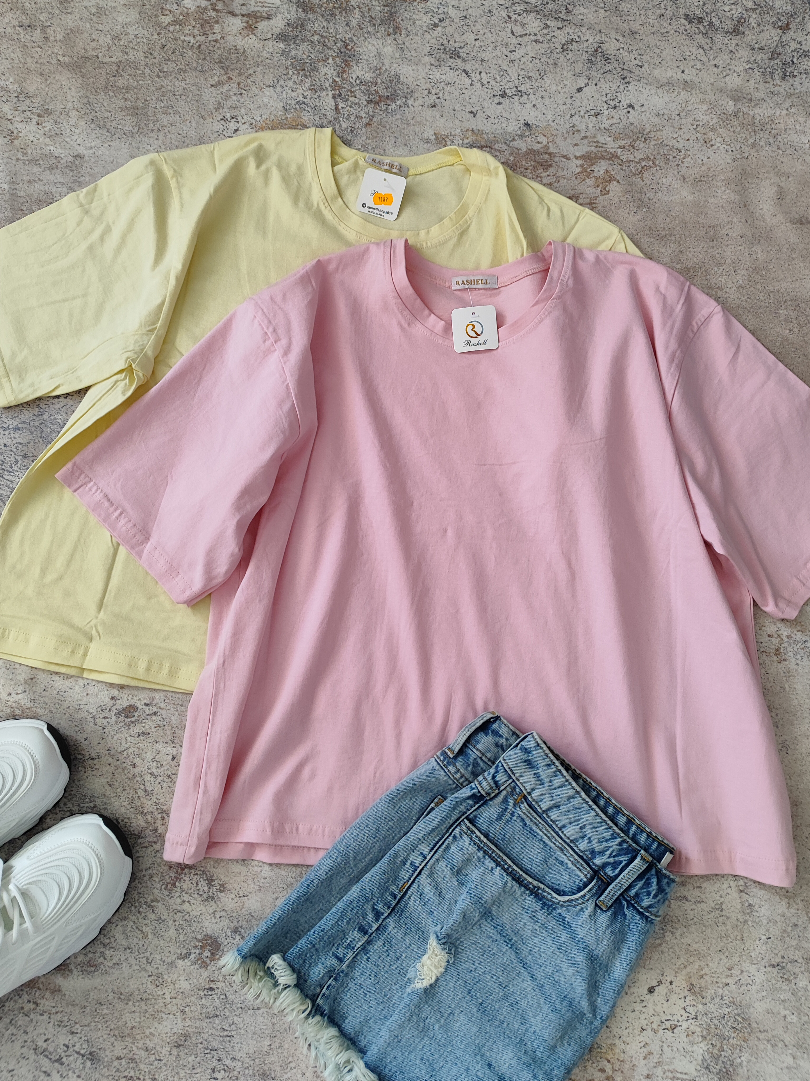 تیشرت باکسی پاستیلی نخ پنبه ساده لش