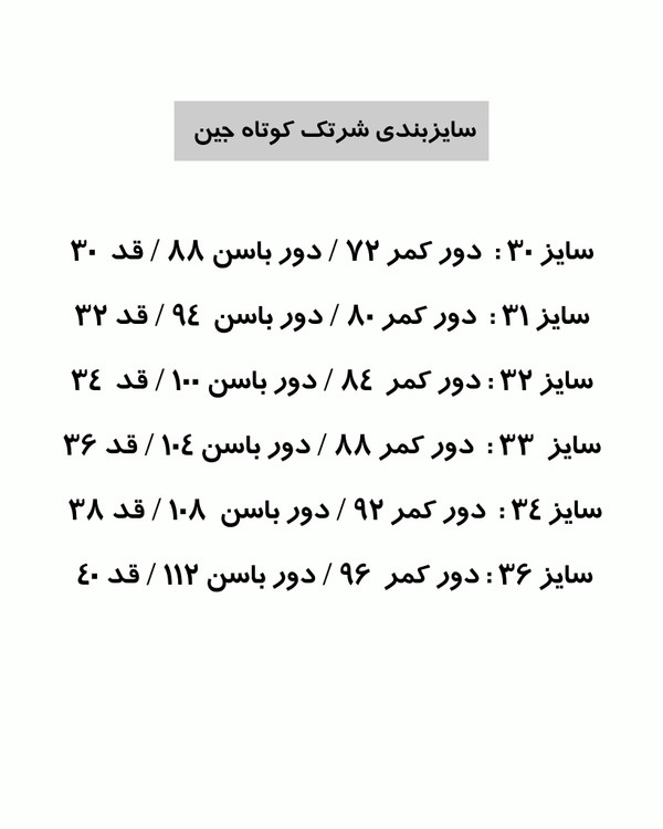 ✅ رنگ سفید سایز ۳۰ : ( دور کمر ۷۴ ) (دور باسن ۸۶ س ) ( دور ران ۵۲ س ) ( قد ۳۰ س)