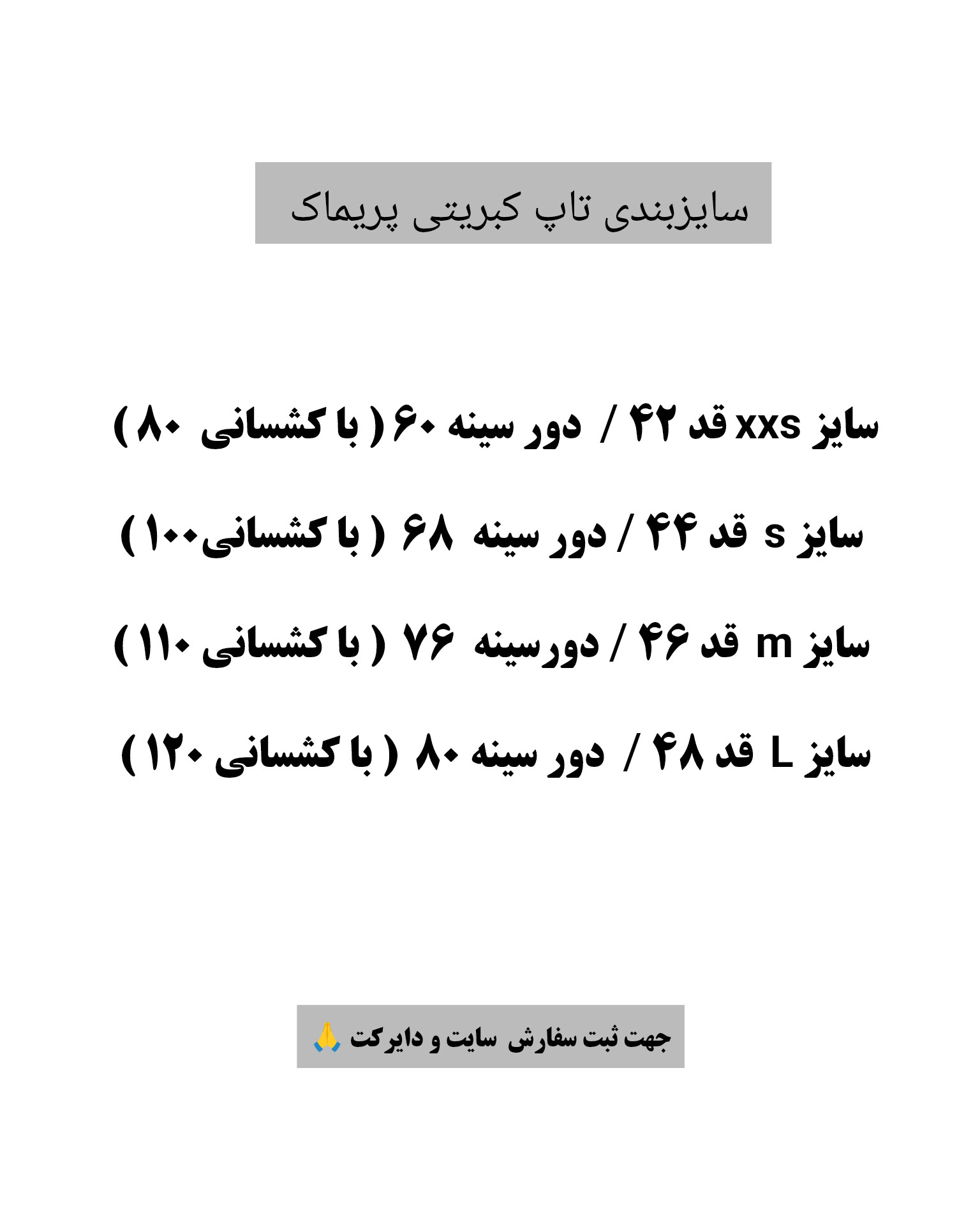 سایبزبندی تاپ کبریتی گیپور پریماک